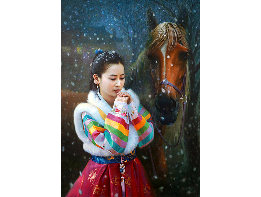 金哲赫(一级画家)《看雪闲行任马迟》118x83