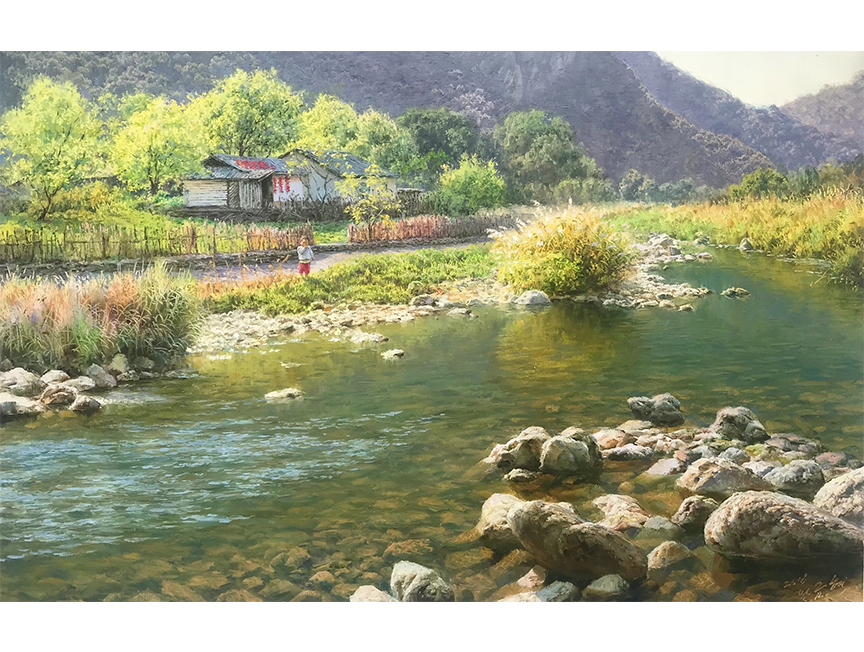 王金革作为朝鲜学院派艺术家的代表,其画作经常参加各种国际画展,受到国际收藏家的重视和关注。他的油画基本功扎实,色彩亮丽丰富而又准确,对于水的质感把握非常精准,笔触优雅,形成了一种穿越传统与当代的艺术之美。