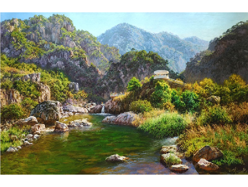 王金革作为朝鲜学院派艺术家的代表,其画作经常参加各种国际画展,受到国际收藏家的重视和关注。他的油画基本功扎实,色彩亮丽丰富而又准确,对于水的质感把握非常精准,笔触优雅,形成了一种穿越传统与当代的艺术之美。